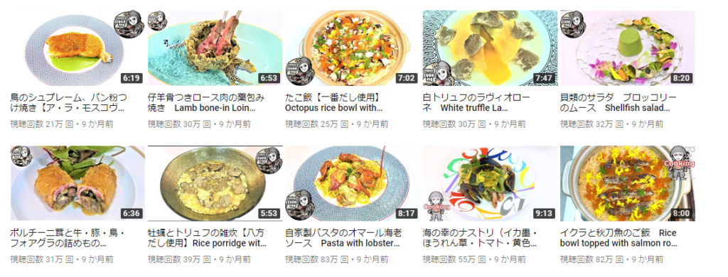 そして、ひと目見ただけで「高い」と分かってしまうような色とりどりの食器など、とにかく動画で使用する道具・食器が他の料理チャンネルよりも頭一つ分飛び抜けた高級品を使用している。