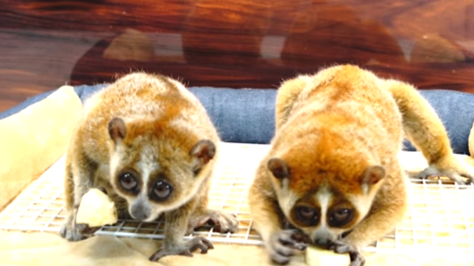 ラファエルのペットであるピグミースローロリスの「あんこ」と「きなこ」である。
