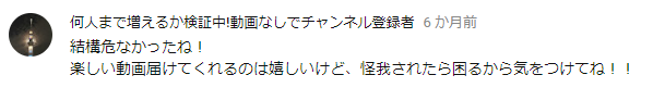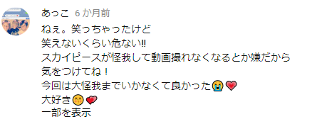 本人たちを始め、もちろん視聴者やファンも大爆笑の動画ではあるのだが、やはりそれよりも怪我をして動画活動ができなくなることを心配する声が大変多く寄せられている。