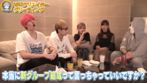 整ったラファエルが手を上げた。グループ名の案その1は「能天気」、由来はYouTuberらしいから、のようだ。ほかにも「二重」など漢字縛りで案が上がっていく中、話は整形の話題へと変わる。