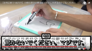 動画内では小柳がメンバーに指示をされながらホワイトボードに漢字を書く姿が映っている。