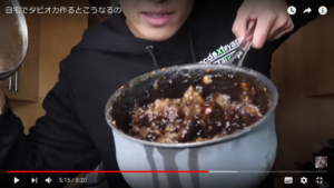 動画内ではタピオカの種からタピオカを作る様子が撮影されている。実際タピオカの種を見たことがある人は少ないだろうが、一から作る様子はまさに勇者の風貌だ。タピオカの種を鍋に入れ、煮詰めるが終始おいしそうに見えない。見る人によっては少しグロテスクに見えるかもしれない。一から作ったタピオカを動画の最後で飲んでいるが、おいしくできたのか?!