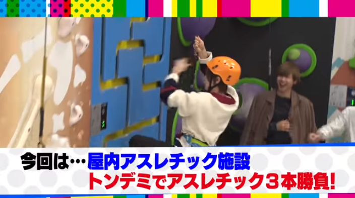 トラジャことTravis Japanのメンバーが、屋内アスレチック施設「トンデミ」でアスレチック3本勝負をすると言う企画で、メンバーの勝負姿がかっこ可愛いと話題に。