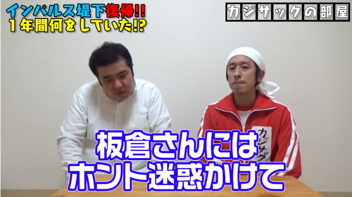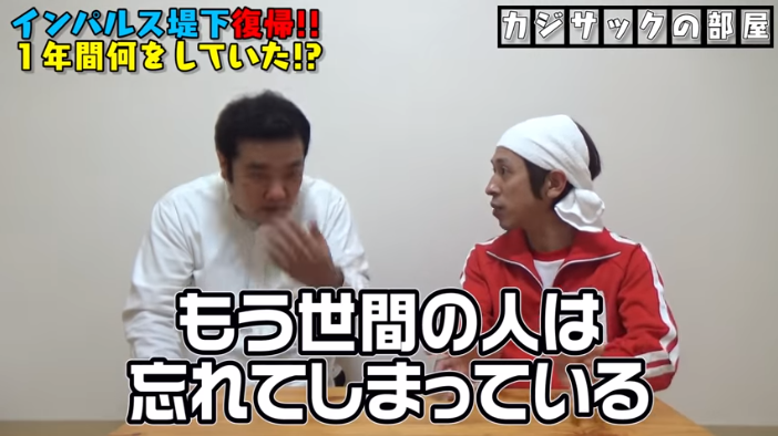 YouTuberカジサックのチャンネルに、この度1年間の休止期間を終え芸能活動復帰を発表した、お笑い芸人インパルスの堤下敦が登場し、話題になっている。