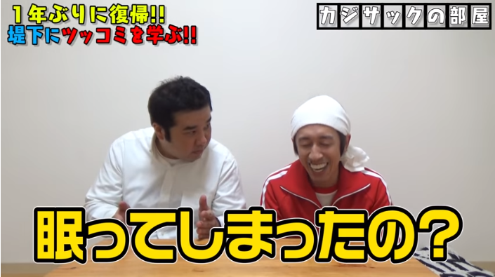 今回の動画では、真面目な話が終わった後は、カジサックが堤下にツッコミを学ぼうとボケるコーナーになっている。