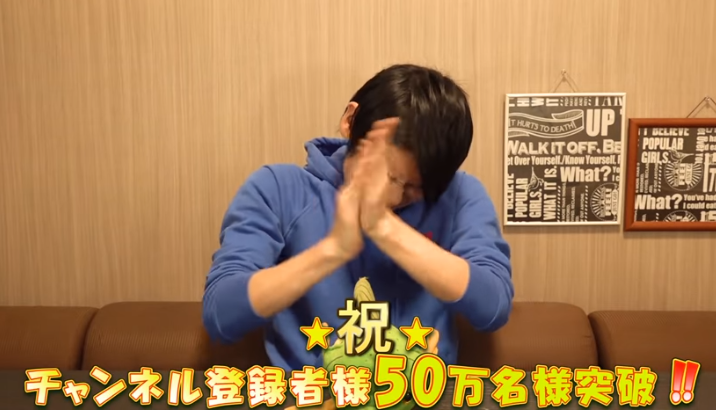 冒頭部分で同日午前2時半頃に登録者数が50万人を突破したことを報告した。