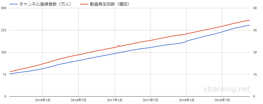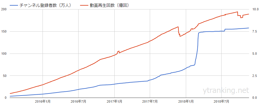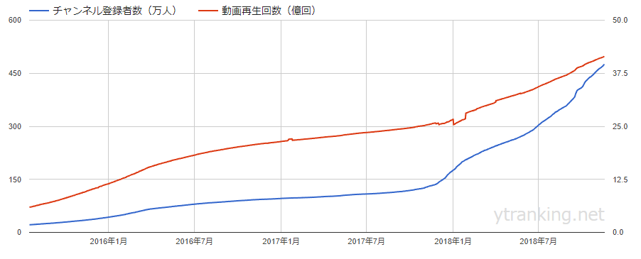 ・登録者が急増し始めたのは2017年末から2018年の初頭頃から