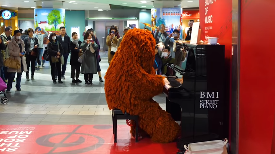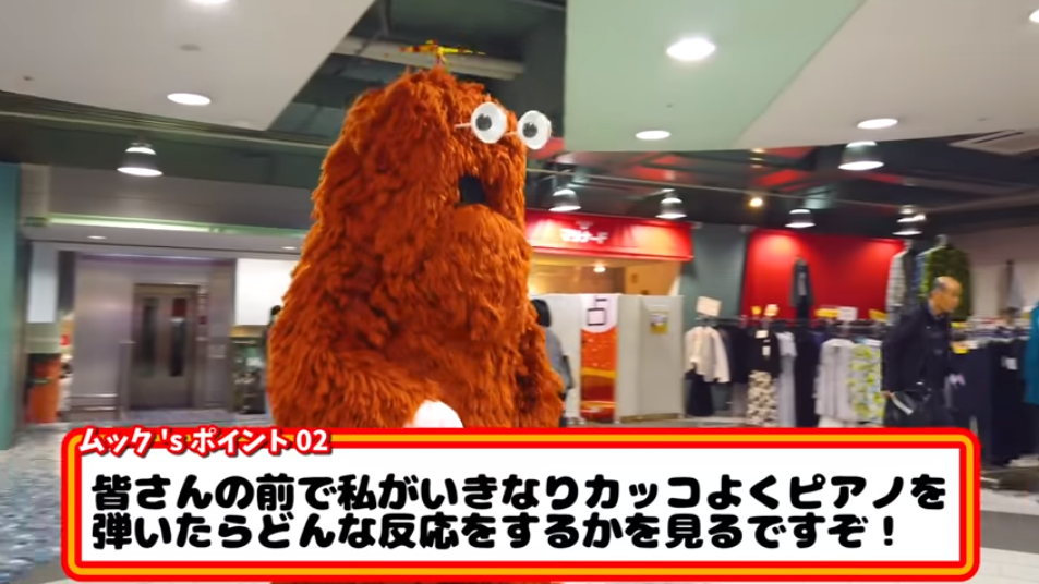 ムックは街行く人々にドッキリをしかけるために、横浜にある駅構内のピアノで演奏することを決めた。