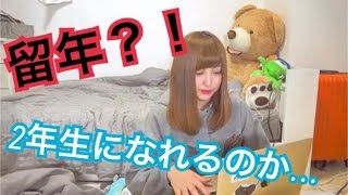 結果を見たかやくまは開口一番、「落としてるー!」と発した。「後期はやばい。3教科落としちゃっとるー。でも…進級は取り敢えず出来ます!良かったー。」と胸を撫で下ろした。「一時はどうなるかと思ったよホントにー。あぶなー…。」と安心した様子を見せたかやくま。