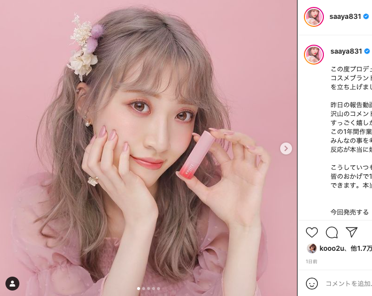 さぁやプロデュースコスメが24時間で2万個完売!オイルリッチティントが好評