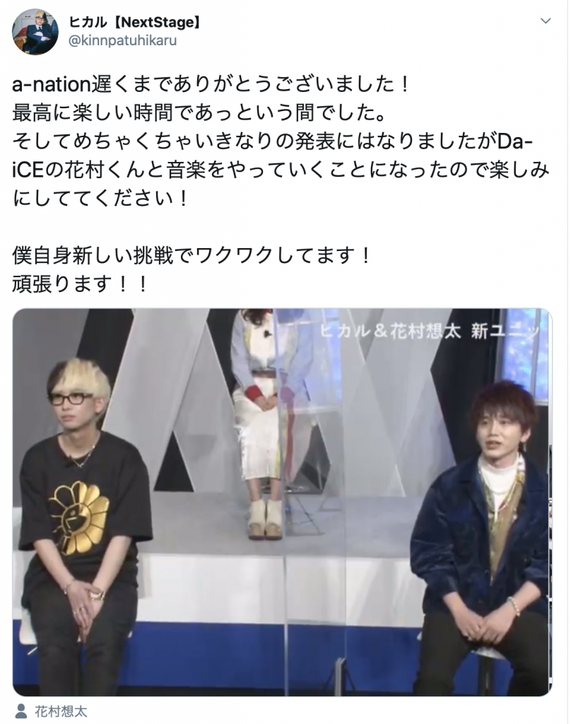 ヒカル Da-iCE花村想太と音楽ユニット結成「新しい挑戦でワクワク」