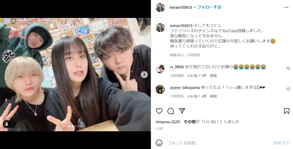 ファミリーずがYouTube再開を報告!「しっかり頑張っていきたいと思います!」